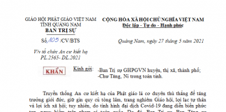 Thông bạch của Trung ương Giáo hội về việc tổ chức…