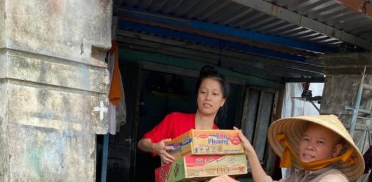 Tặng quà cứu trợ bão lụt tại chùa Phú Quang và Yên Sơn